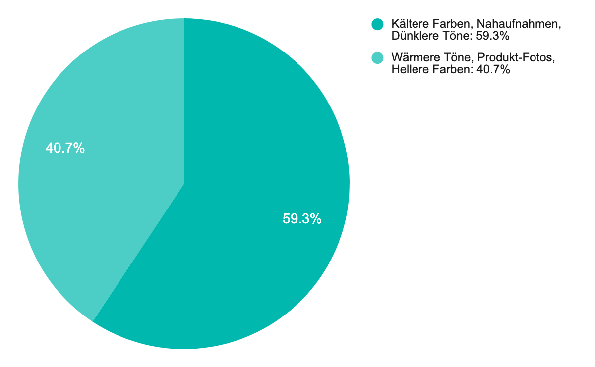 59,3 % der Influencer gaben an, dass sie kältere Farben, Nahaufnahmen und dunklere Töne bevorzugen. 40,7 % setzen dafür eher auf Produkt-Fotos und hellere Farben.