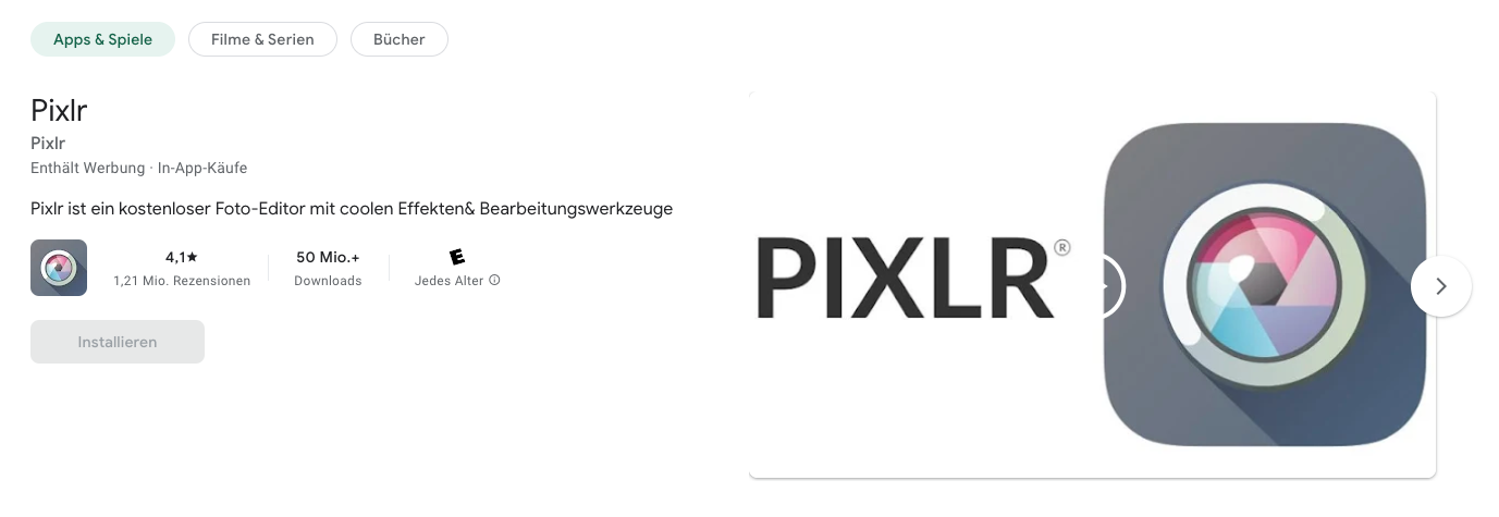 Pixlr war ursprünglich ein vollständig webbasiertes Bildbearbeitungsprogramm, das Photoshop-Funktionen kostenlos online anbot. Hieraus ist eine kostenlose App für iOS und Android entstanden, die die besten Funktionen der Web-Version kombiniert. Neben einer breiten Auswahl an Bearbeitungswerkzeugen kannst Du auch Deine eigenen Filter erstellen. Zusätzlich gibt es lustige Tools wie Aufkleber, Rahmen und Pinselwerkzeuge für eine selektive Bearbeitung.