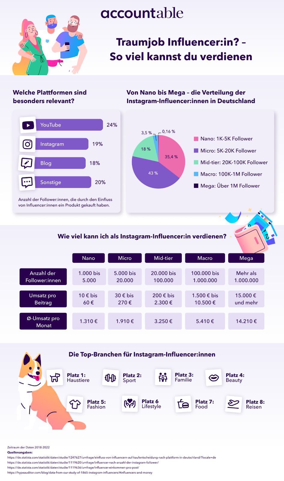 Die Infografik von Accountable zeigt Dir die wichtigsten Infos zum Influencer-Einkommen: